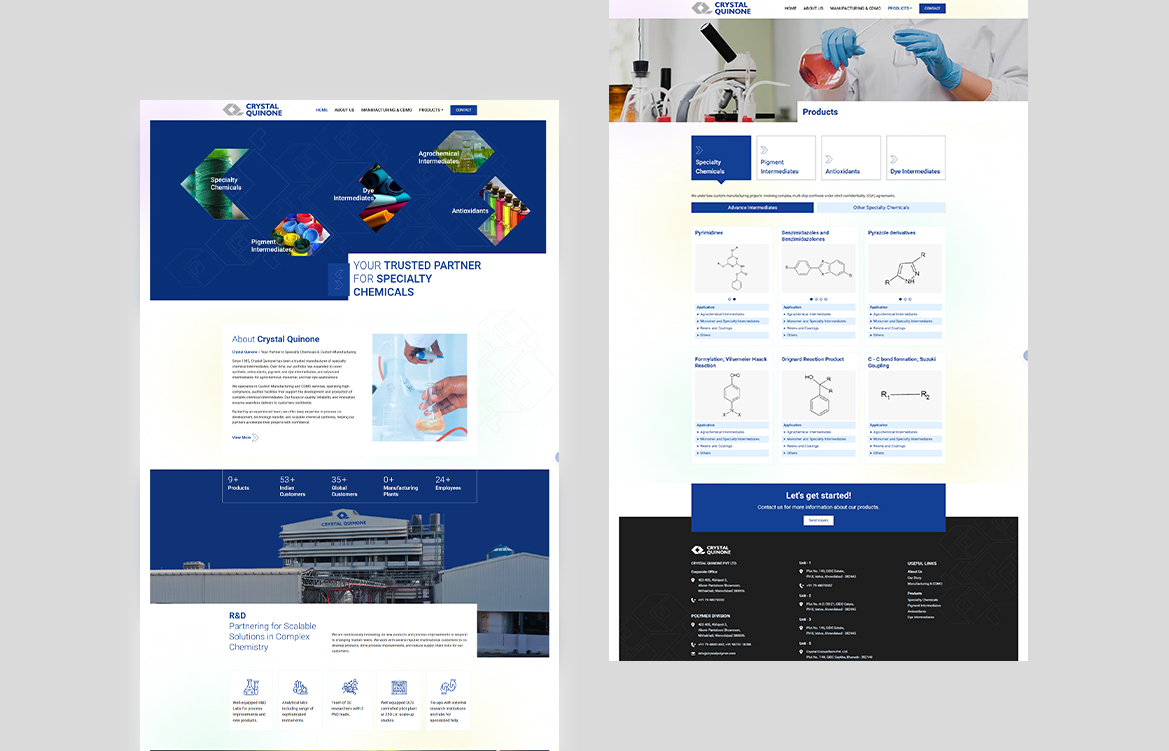 - Website positioned Crystal Quinone as a credible and professional manufacturer
